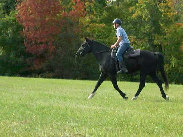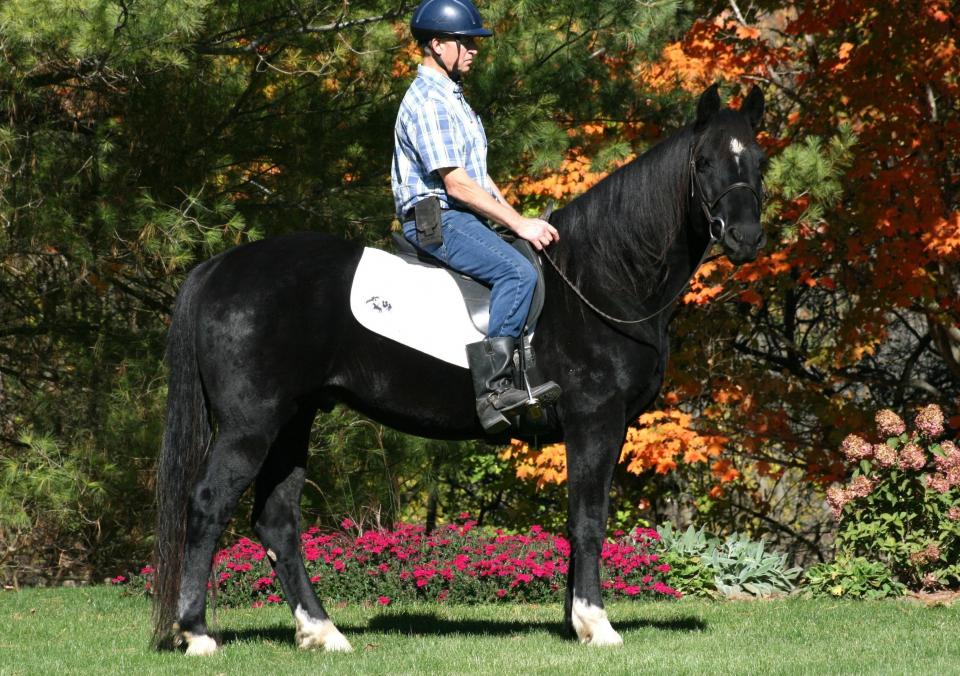 Tall 15.2 hand, black, straight haired, Curly sporthorse stallion with awesome movement for dressage. Registered with ABCR and Curly Sporthorse International. Carbonado has powerful, forward movement with lots of extension, suspension, and impulsion. A lovely topline and pretty head with a perfect diamond, hense his name Carbonado (meaning black diamond in Spanish). Carbonado's sire, Black Diamond won many awards and ribbons showing up to Second Level dressage and schooling Third Level. Carbonado has a 3/4 sibling showing Prix St. George. UPDATE: Carbonado is now a gelding and is very quiet, reliable, and solid under saddle. He would make a lovely dressage horse with his big floating movement and he loves trail riding as well. He is the type of horse you could take to a show one day and trail ride another. Carbonado comes when called, has perfect ground manners, and trailers well. He has been tested as hypoallergenic. Carbonado loves people and is looking for his special person.