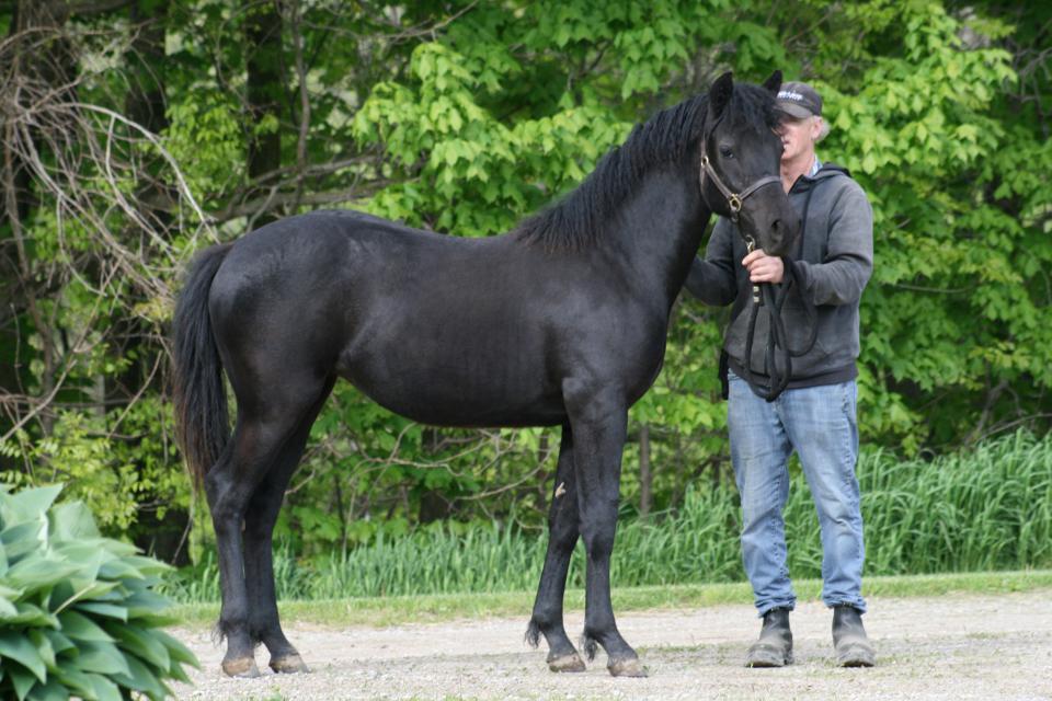 FloraLake Bold Beauty is a charming little black filly. She has lots of presence, is curious, confident, and sweet. Her movement is lovely as well. Bold Beauty will have the full mane and tail as she matures. She is expected to finish around 15 hands.