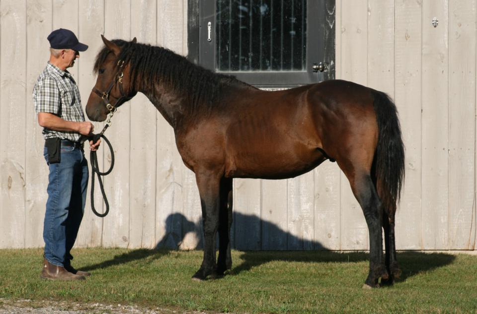 Harper is a bay curly colt who will have the full mane and tail as he grows. Harper has lots of presence and thinks he's pretty cool. Sweet as can be though and looking for his new family. Expected to mature at 14.3 to 15 hands.