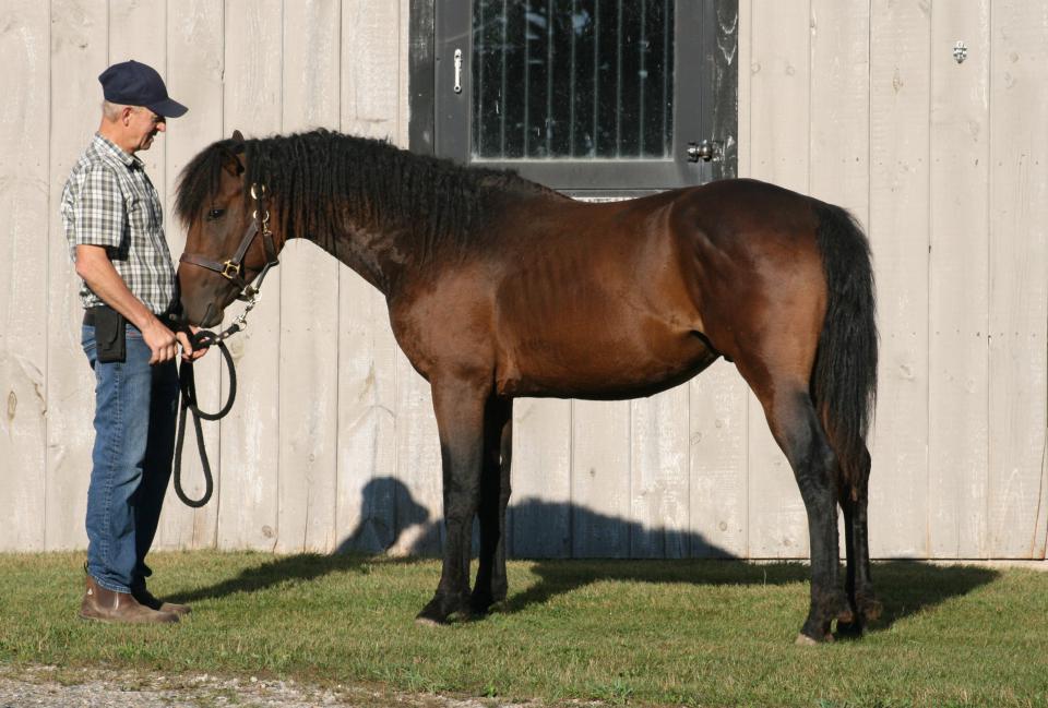 Harper is a bay curly colt who will have the full mane and tail as he grows. Harper has lots of presence and thinks he's pretty cool. Sweet as can be though and looking for his new family. Expected to mature at 14.3 to 15 hands.